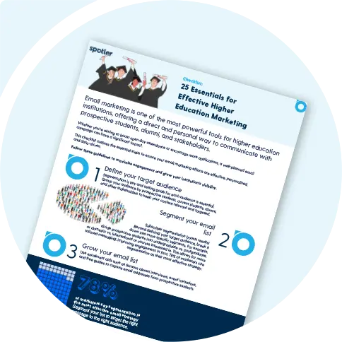 Our infographic lets you tick off all the steps you are already doing, and if you’re feeling competitive – add up the total to give you a HE email marketing grade from fresh-faced Fresher right through to Email Marketing PhD’s.