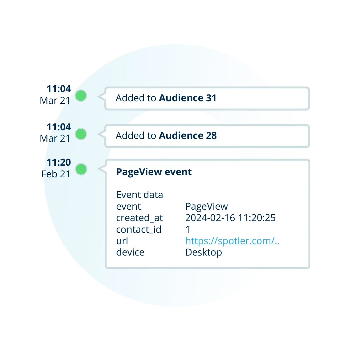 Een 360-graden klantprofiel is overzicht van alle relevante data van een individu. Dit kan een bestaande klant zijn, maar ook een bekende of onbekende websitebezoeker. In dit persoonlijke profiel vind je alle beschikbare persoonlijke informatie en de gelogde events (interacties) met jouw organisatie. Denk aan bekeken pagina’s en producten op je website, eerder bestelde producten, ontvangen e-mails of bijvoorbeeld interacties met je klantenservice. Iedere keer dat Spotler Activate een nieuw event logt, wordt deze in real time toegevoegd aan het profiel. Hierdoor weet je zeker dat het profiel je altijd de laatste en dus meest relevante inzichten geeft.