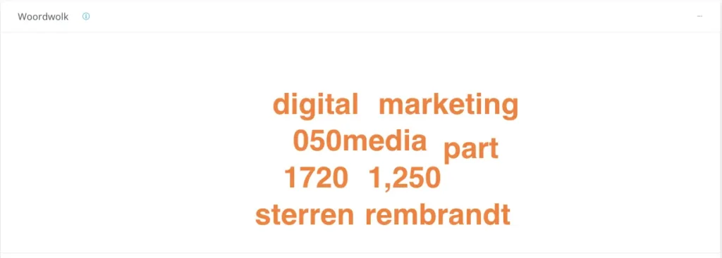 Omdat de termen in de woordwolk tags zijn, kun je achterhalen of de concurrent veel wordt genoemd in combinatie met mogelijke klanten (zijn ‘sterren’, ’rembrandt’ of ‘050media’ klantnamen?), actief is in bepaalde regio’s (Noord-Nederland is in beeld bij de concurrent?) en in welke media de concurrent genoemd wordt (veel berichten op Instagram?).
