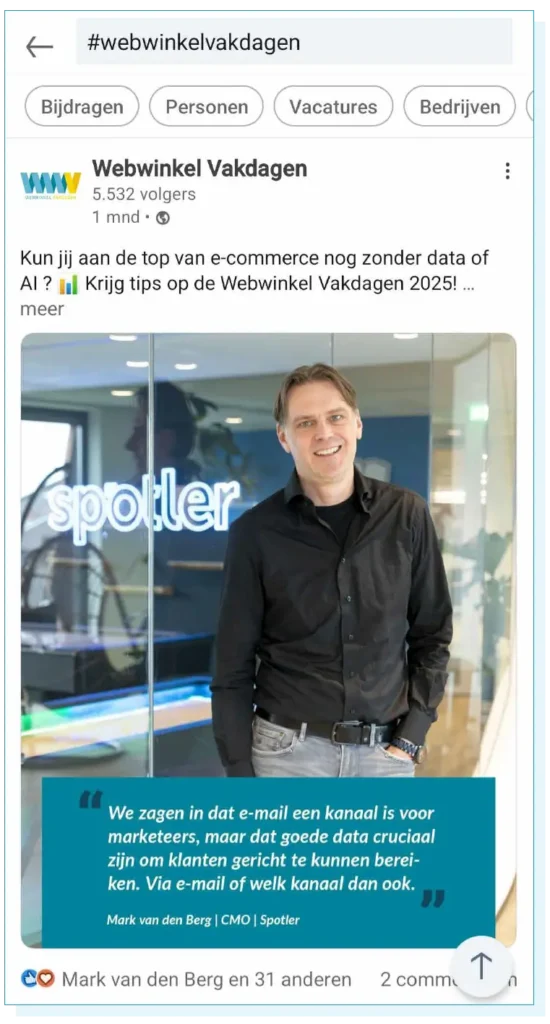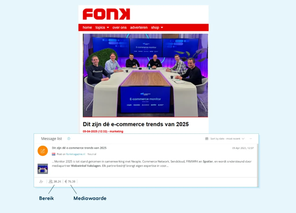Om nog eens een voorbeeld uit eigen koker te gebruiken: tijdens de bekende e-commercebeurs Webwinkel Vakdagen (editie 2025) werd het rapport E-commerce Monitor gepresenteerd. Zowel de beurs als het rapport waren belangrijk voor Spotler.