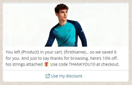 How? With the right message, timing, and tone. WhatsApp now becomes your friendly nudge, not a guilt trip. You’re reminding them what they liked about you in the first place. The easiest option, of course, is to throw in a discount for everyone. But not everyone needs this to be convinced.