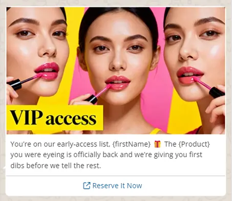 “You’re on our early-access list, {firstName} 🎁. The {Product} you were eyeing is officially back, and we’re giving you first dibs before we share it with the rest.”