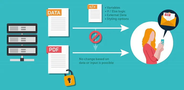 You can create trigger-based PDFs or let your CMS or invoicing system do so. Dynamic attachments, however, require a specialized platform. To create dynamic PDFs, you need first to collect the data you need. Use that data to personalize your content in an XHTML template converted to PDF.
