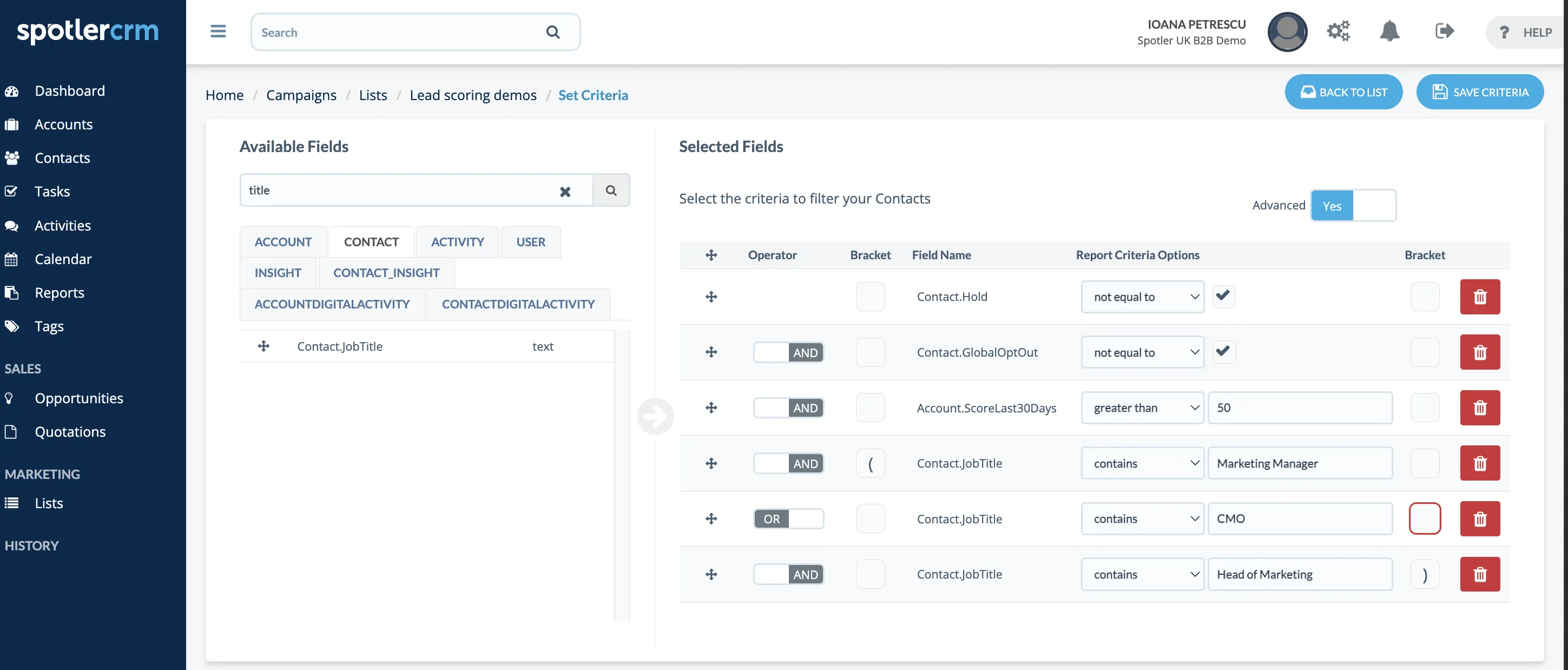 A lead who requests a whitepaper, you give fewer points than a lead who requests a demo. But suppose a lead does not request one whitepaper, but several over a period of six months. You can compile lists on such a tag with a higher number of points and plan specific actions. You’ll probably want different notifications to go to your sales team for these two cases.