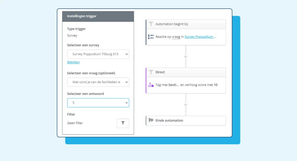 Not all email marketing software is equipped with a survey module, but Spotler Mail+ is. You can also apply tagging in this module. A nice example: if contacts have to fill in appreciation questions, you can specifically tag these questions if the score is negative or very positive.