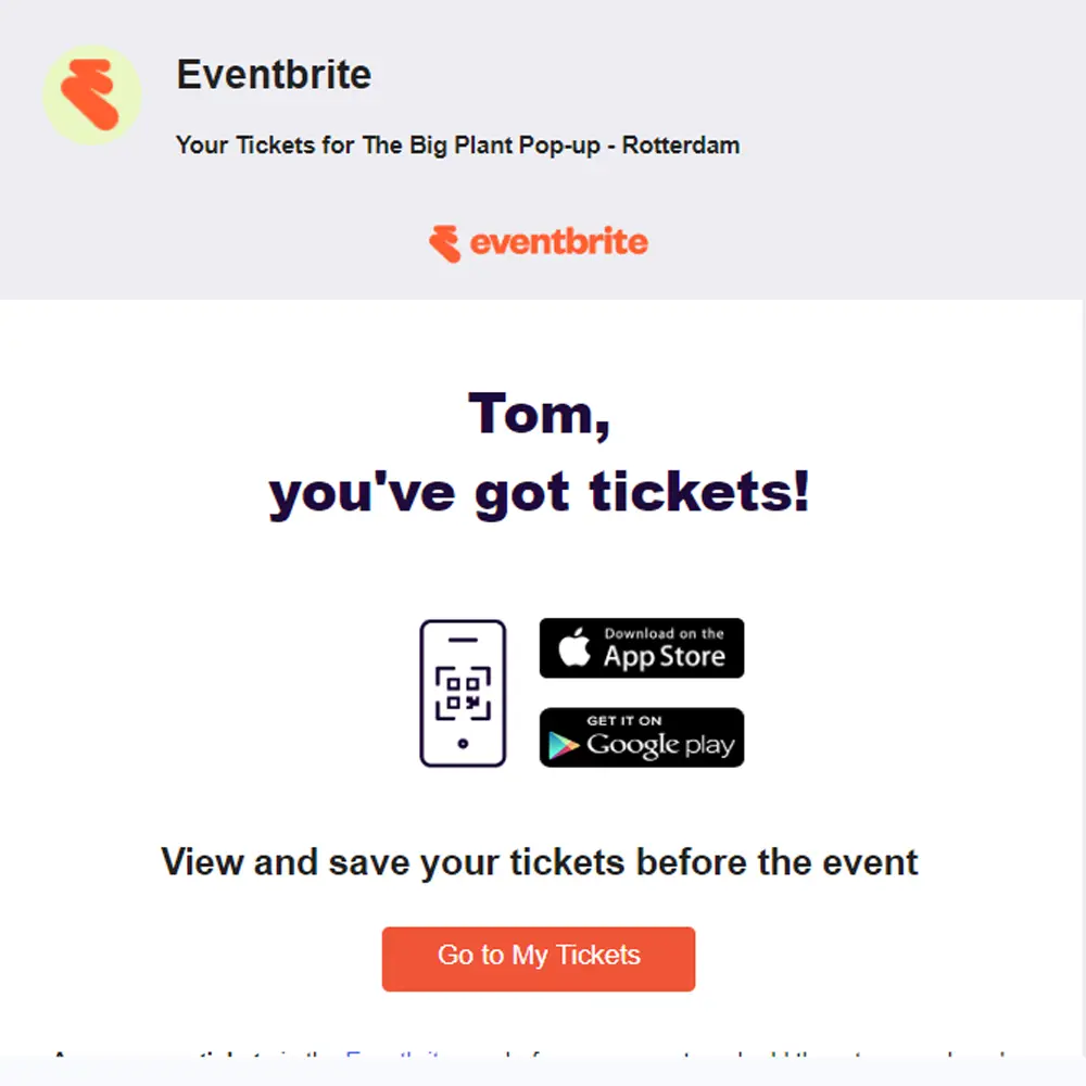 In the examples below, Eventbrite realised that the first ‘action’ people take after ordering tickets is to save them to their phone. Robey, on the other hand, made sure to make the order information as compact as possible to also show the order item ‘above the fold’: