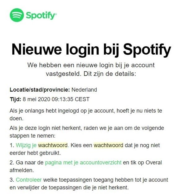 De “verdachte login” e-mail