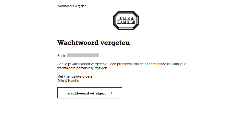 Een ander belangrijk aspect van wachtwoord reset e-mails is het aanspreken van de ontvanger bij zijn (gebruikers-)naam. Dat wekt het vertrouwen dat belangrijk is, wanneer de ontvanger zelf niet zijn wachtwoord reset heeft aangevraagd. Wanneer je dan een generieke e-mail stuurt, is de kans groter dat deze genegeerd wordt (uit angst voor phishinglinks). Spreek de ontvanger daarom altijd persoonlijk aan.