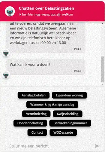 Een belangrijk piekmoment start vanaf februari. Hét moment waarop de jaarlijkse belastingaanslagen en/of WOZ-beschikkingen op de mat vallen. Dit zorgt ieder jaar voor veel extra contactmomenten. Burgers vinden de WOZ-waarde té hoog of begrijpen niet hoe deze wordt berekend. Sinds dit jaar kunnen burgers met vragen over hun WOZ-waarde ook terecht bij de chatbot. Zo worden burgers direct doorverwezen naar de juiste plek op de website waar ze meer uitleg vinden óf waar ze eenvoudig bezwaar kunnen indienen. De ervaring bij andere klanten leert dat de inzet van extra kanalen, waaronder een chatbot, zorgt voor meer spreiding en een afname van het telefoonverkeer.