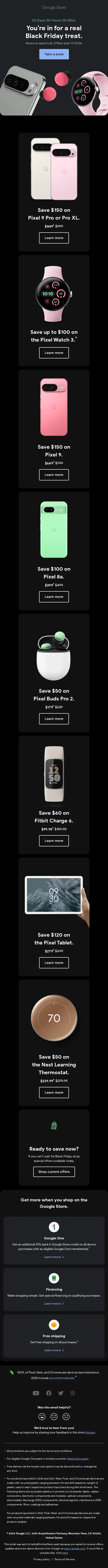 Consumers no longer shop en masse on that one Friday, but spread their purchases over several days. Online stores are cleverly capitalising on this by launching their Black Friday deals earlier and earlier. For example, Google started their 2024 Black Friday sale on November 21st, and ran an email campaign to build up to that date: