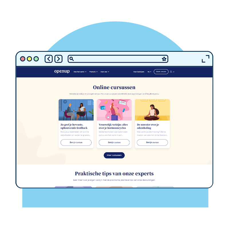 We think it is very important that our employees feel good about themselves. But of course, there may be major or minor challenges in your private or work life. You can use the online platform OpenUp for this. Through OpenUp, you can easily and quickly get help from psychologists via telephone, chat or video consultation. This is completely anonymous. You can book a session independently at OpenUp. Spotler does not receive information about whether you request a session and what you discuss there.