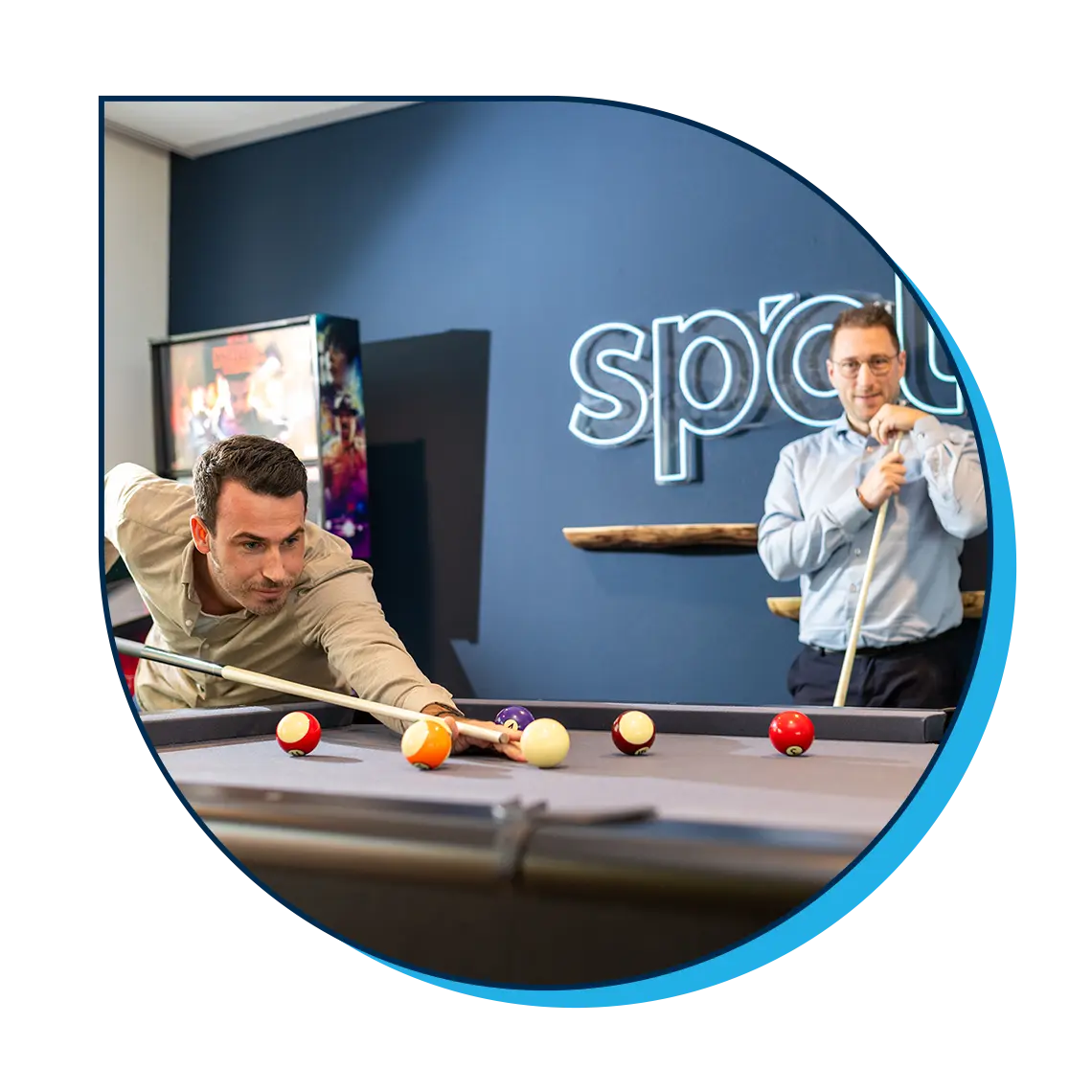 At the same time, we love to have fun together. We organise great company outings and social activities. Our offices are equipped with top-quality hardware, furniture and tech, but also have “play zones” where you can relax. Catch up with colleagues over a drink, or play a game of darts, pool, shuffleboard, pinball or Mario Kart.