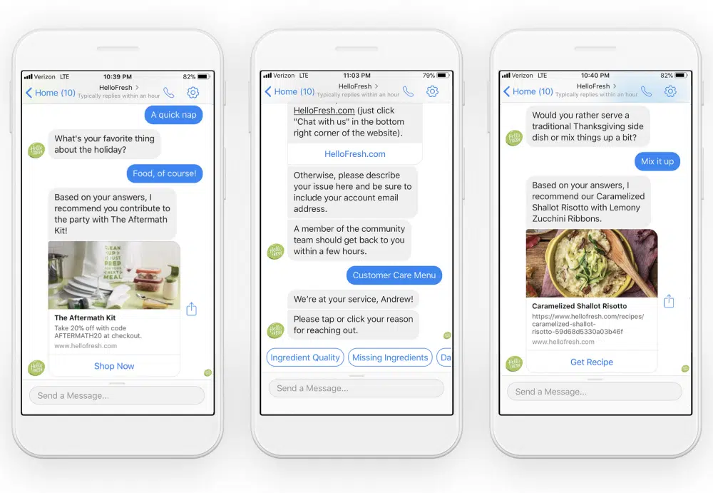 HelloFresh provides suggestions for a delicious dinner based on a few questions. By asking a few simple questions, the chatbot learns your preferences: