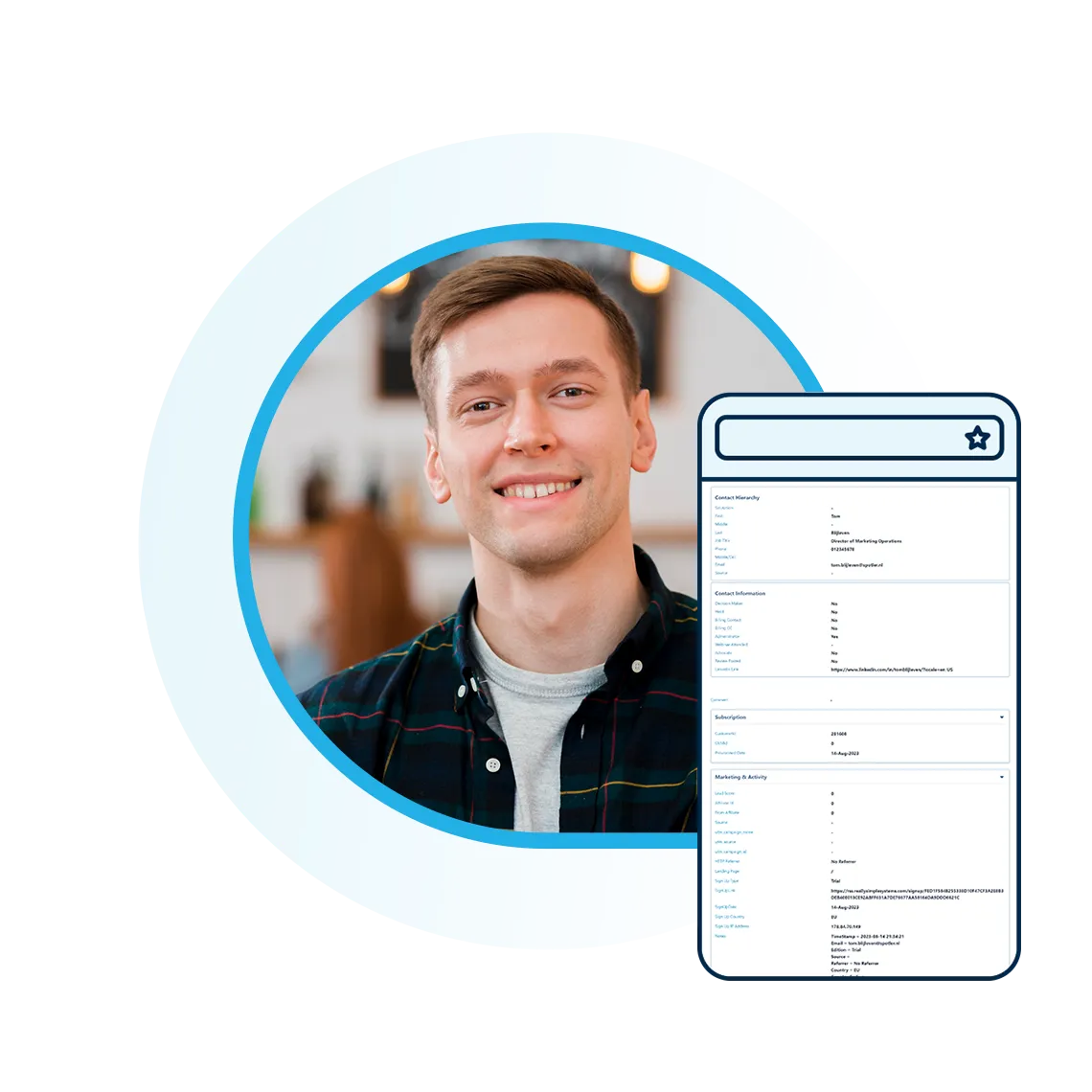La información sobre clientes y prospectos suele almacenarse en diferentes sistemas. A menudo, estos sistemas contienen datos desactualizados o fragmentados. Y eso es una lástima. Utiliza un único sistema para recopilar los datos de contacto y de cuenta, y enriquece esta información con los datos obtenidos de la interacción de tus contactos con tu organización. Así sabrás con quién estás hablando y podrás ofrecerles un mejor servicio.