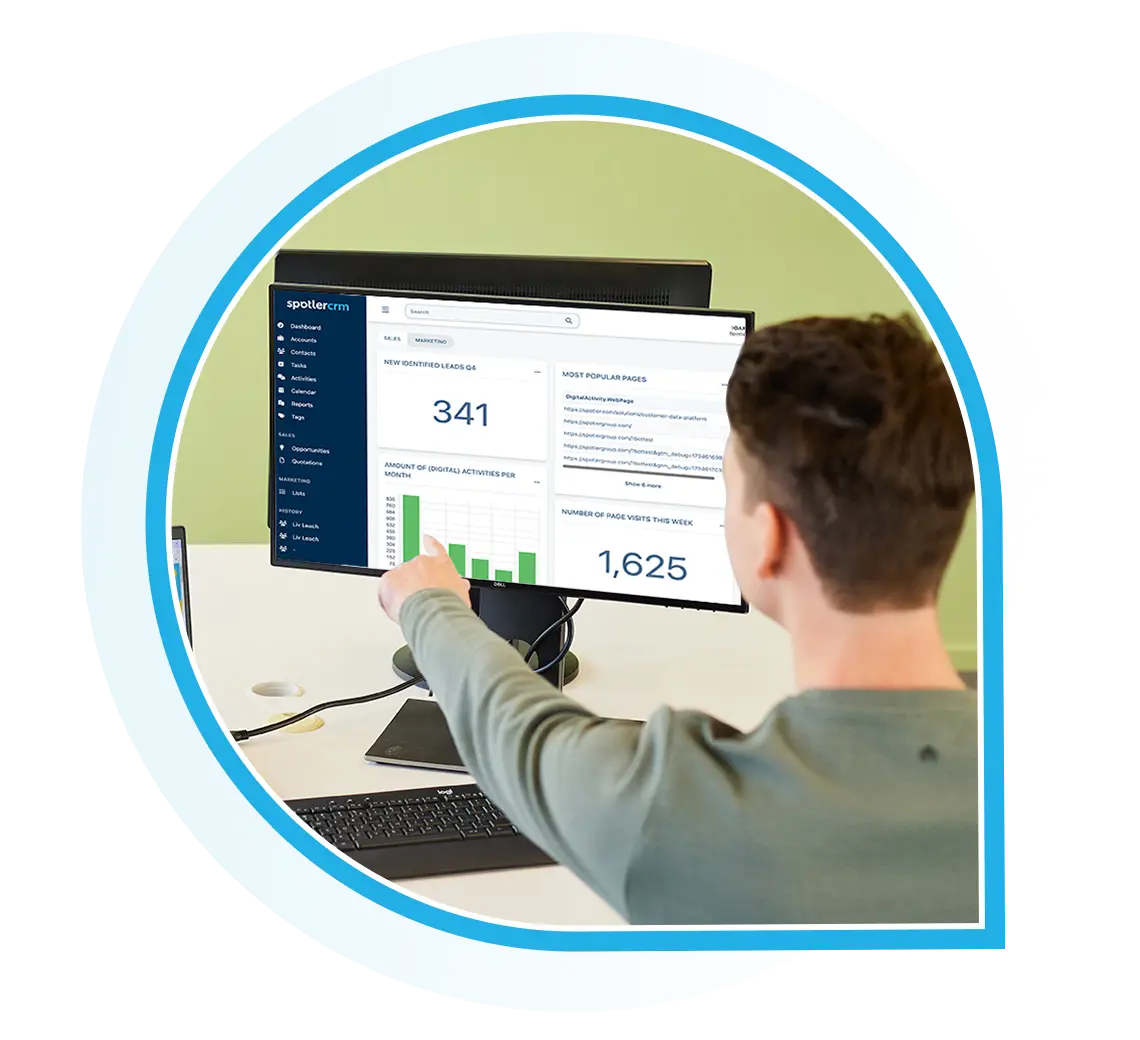 The Spotler CRM system can be adapted to your wishes. This way you can add new and custom fields and manage user access in different ways. Although some dashboards and reports are predefined, you can also customise them yourself or create your own reports and dashboards. You can easily organise and manage your processes and data as you see fit.