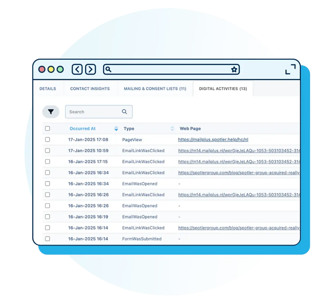 Information about customers and prospects is often stored in different systems, leaving you with outdated or fragmented data. And that’s a pity. Spotler CRM allows you to collect contact and account information and to enrich this data with how your contacts interact with your organisation. This way you know who you are talking to and how to customise your services to everyone’s needs.