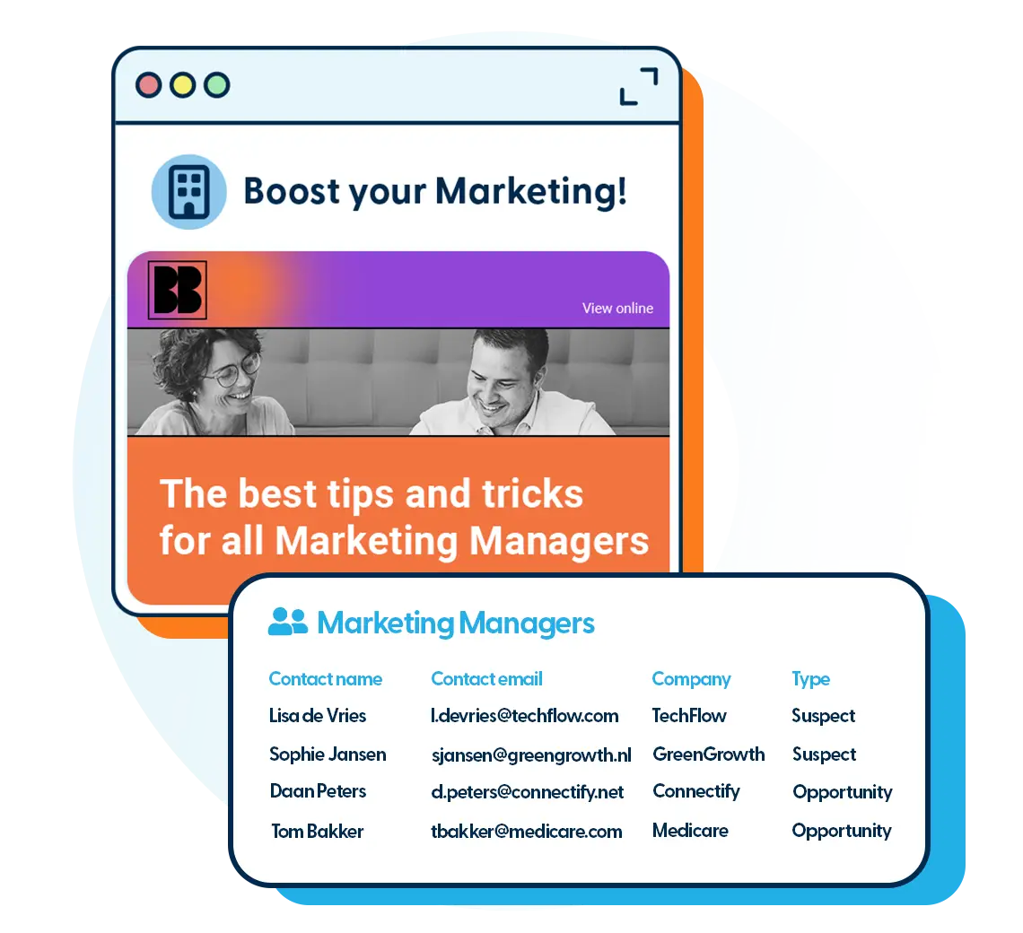 With Spotler CRM you have insights the status of each lead and how opportunities evolve each month.