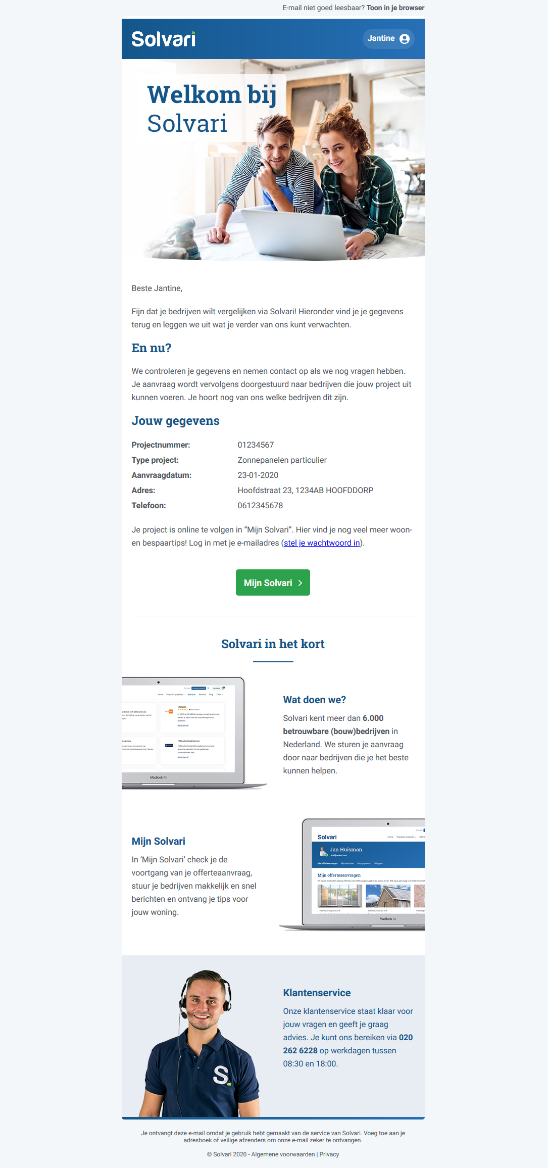 In dit voorbeeld stuurt Solvari haar potentiële klant een e-mail die van A tot Z begeleid.