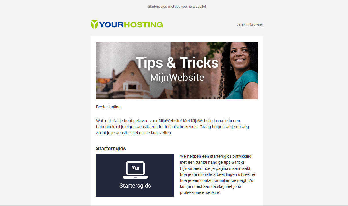 In dit voorbeeld is Jantine een fictieve klant van YourHosting