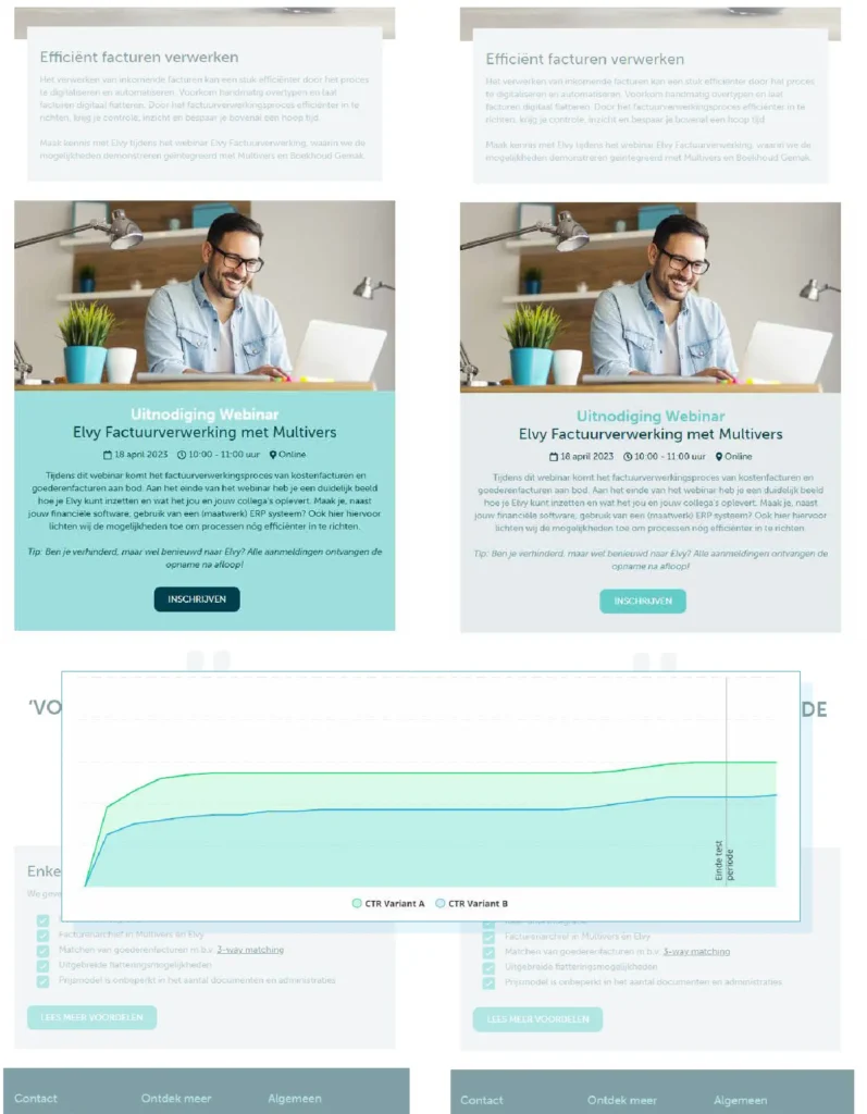 Der linke Inhaltsblock mit den dunkleren Farben (Variante A) erzielte während des Tests die besten Werte, auch wenn der Unterschied eine Woche nach dem Test nicht mehr ganz so deutlich war. Diese Tests lassen sich auch mit einem kleinen Marketingteam gut durchführen und liefern viele nützliche Informationen über das Verhalten der Zielgruppe. Auch in einem Marketingteam, das nur aus zwei oder drei Personen besteht, lässt sich so professionelles E-Mail-Marketing durchführen.