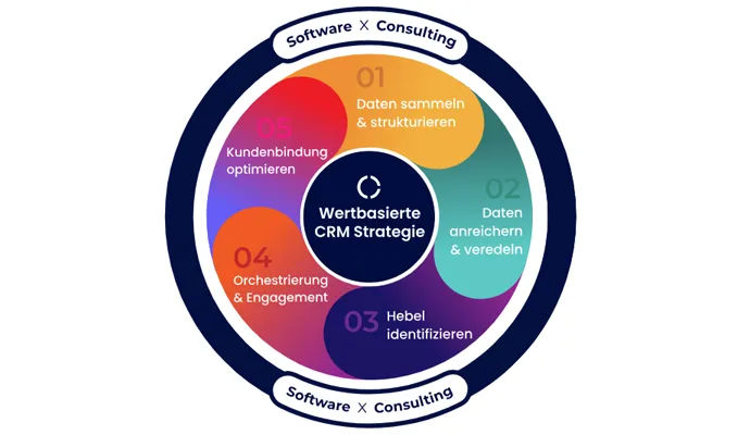 Lassen Sie uns einen tieferen Blick auf jeden dieser Bausteine werfen und verstehen, wie unsere Mischung aus Software und Beratung eine umfassende Lösung für Ihr erfolgreiches wertorientiertes Kundenbeziehungsmanagement bietet.