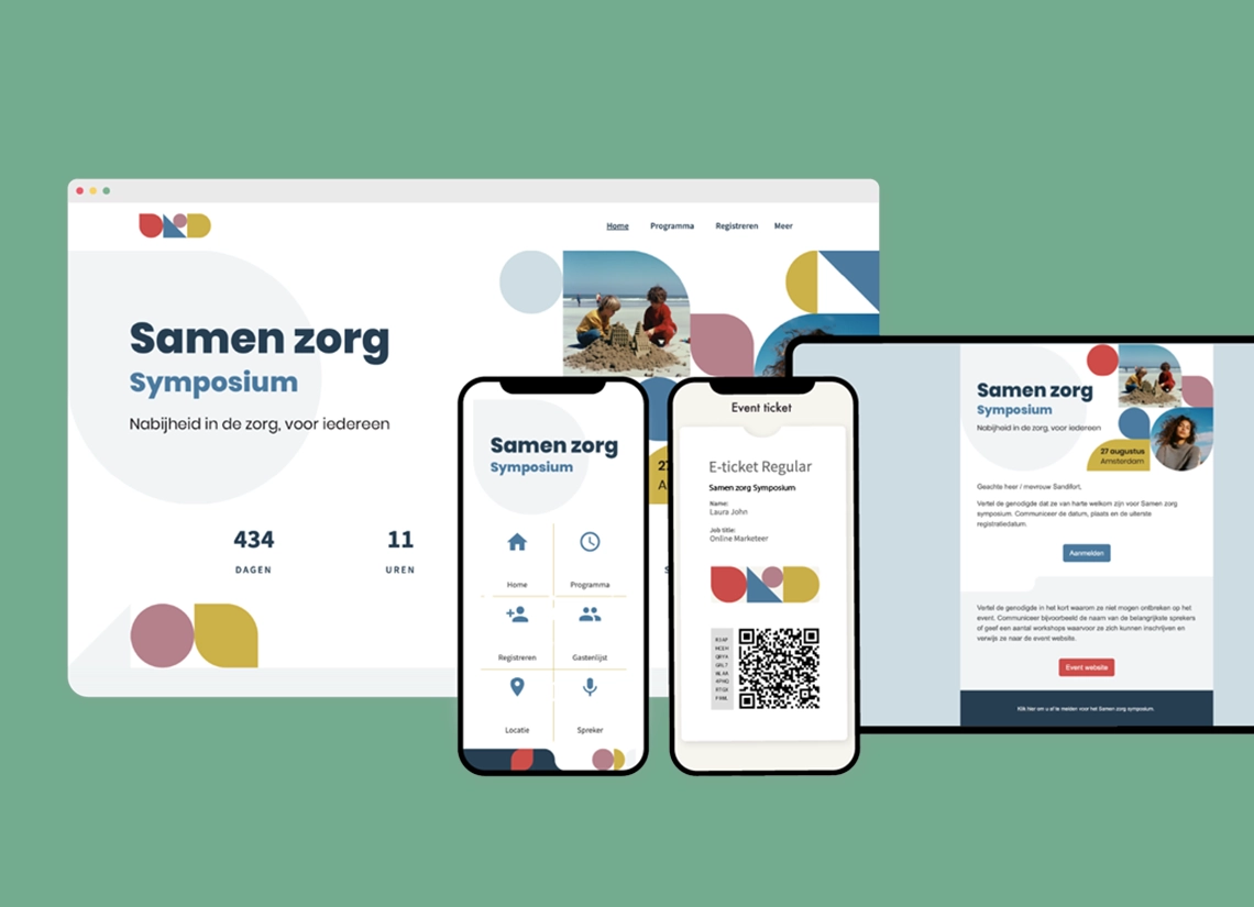 Create clear event pages with essential information such as programme, speakers and location, designed in your own style.