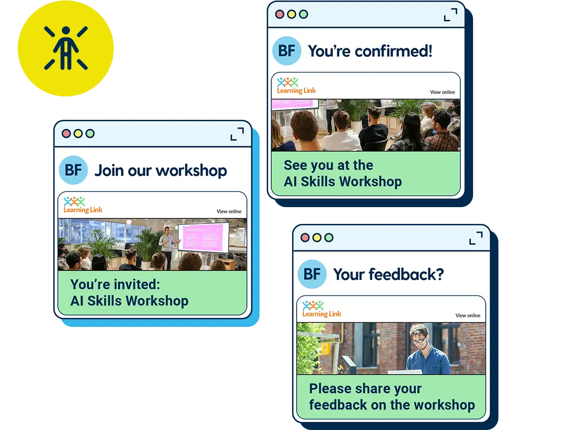 Branded invitations, automated confirmations and thank-you emails keep the experience seamless and your message consistent.