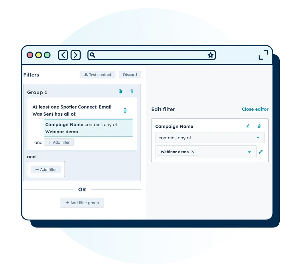 Spotler’s native integration with HubSpot brings marketing and sales closer together, without the high cost. Sync contacts, companies, opt-ins and digital activity in both directions to keep data clean, campaigns targeted, and teams aligned. Run advanced, personalised campaigns based on real-time CRM data and lead behaviour. It’s all the power of enterprise automation, made accessible for growing B2B teams.