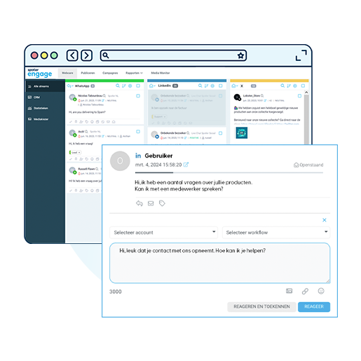 With Spotler, all online communication channels converge into a single, streamlined overview, enabling your team to collaborate efficiently. Easily respond to all inquiries on your audience’s preferred channels, without losing track.