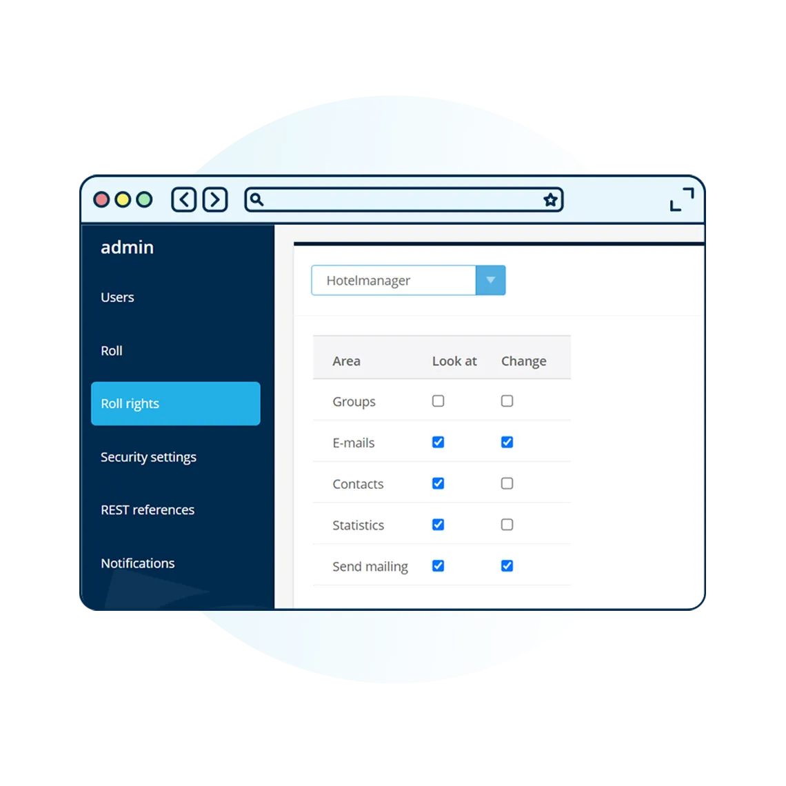 Have a strict control over user rights and roles. Whether managing campaigns, analysing results or managing contact lists, set access levels for every member of your team(s) in every detail.