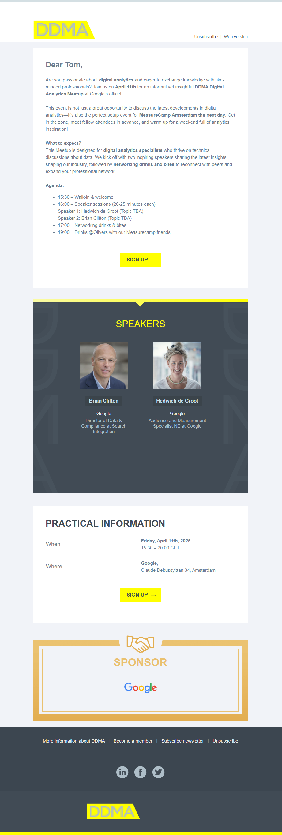 This event invitation email from DDMA contains a lot of information