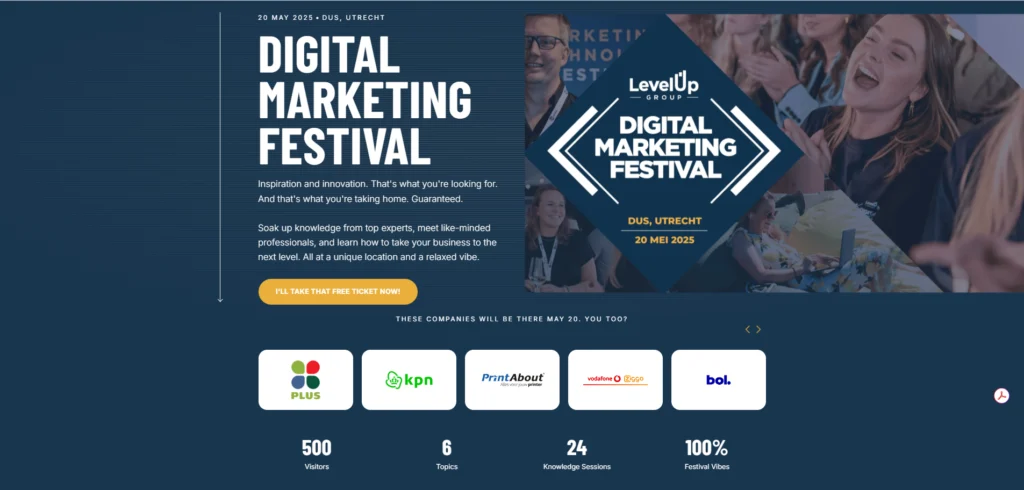 First, it’s got to be clear. No one should land on your homepage and wonder what the event is about, or whether they’re in the right place. That clarity starts with a strong visual identity: a banner image that sets the tone, communicates the theme, and includes the essentials: event name, location, date. You don’t need a design degree, but you do need a bit of restraint. Limit your colours. Guide the eye. Make space for your call to action.