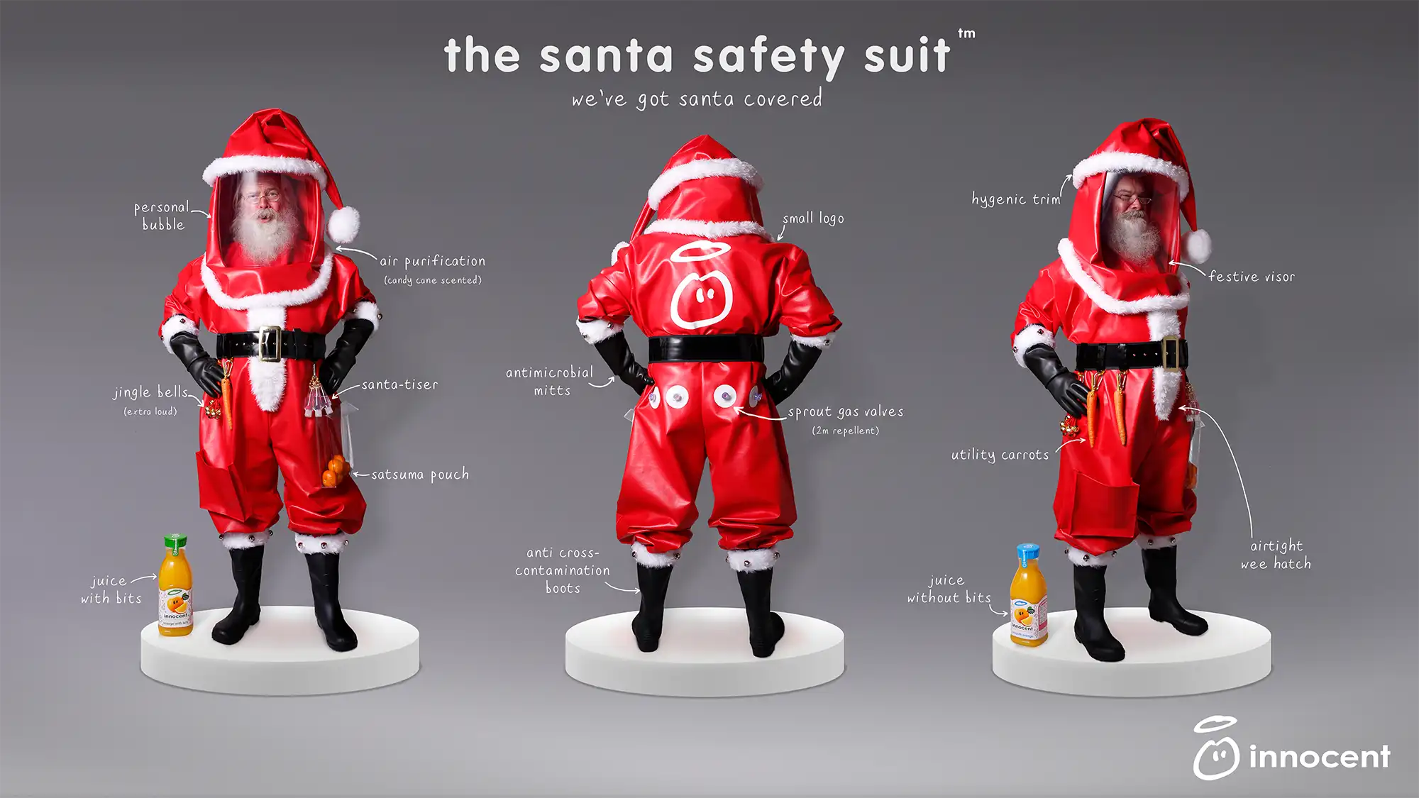 A playful, tongue-in-cheek campaign addressing lockdown life with a “Santa Safety Suit” and mock children’s storybook. It blended festive humour with real-world empathy—staying true to Innocent’s warm, witty tone.