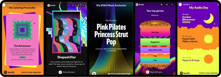 Example: Spotify Wrapped turns user listening data into a nostalgic reflection of the year—inviting users to relive their music journey, share it, and feel seen. It’s a masterclass in memory-driven marketing and personal storytelling.