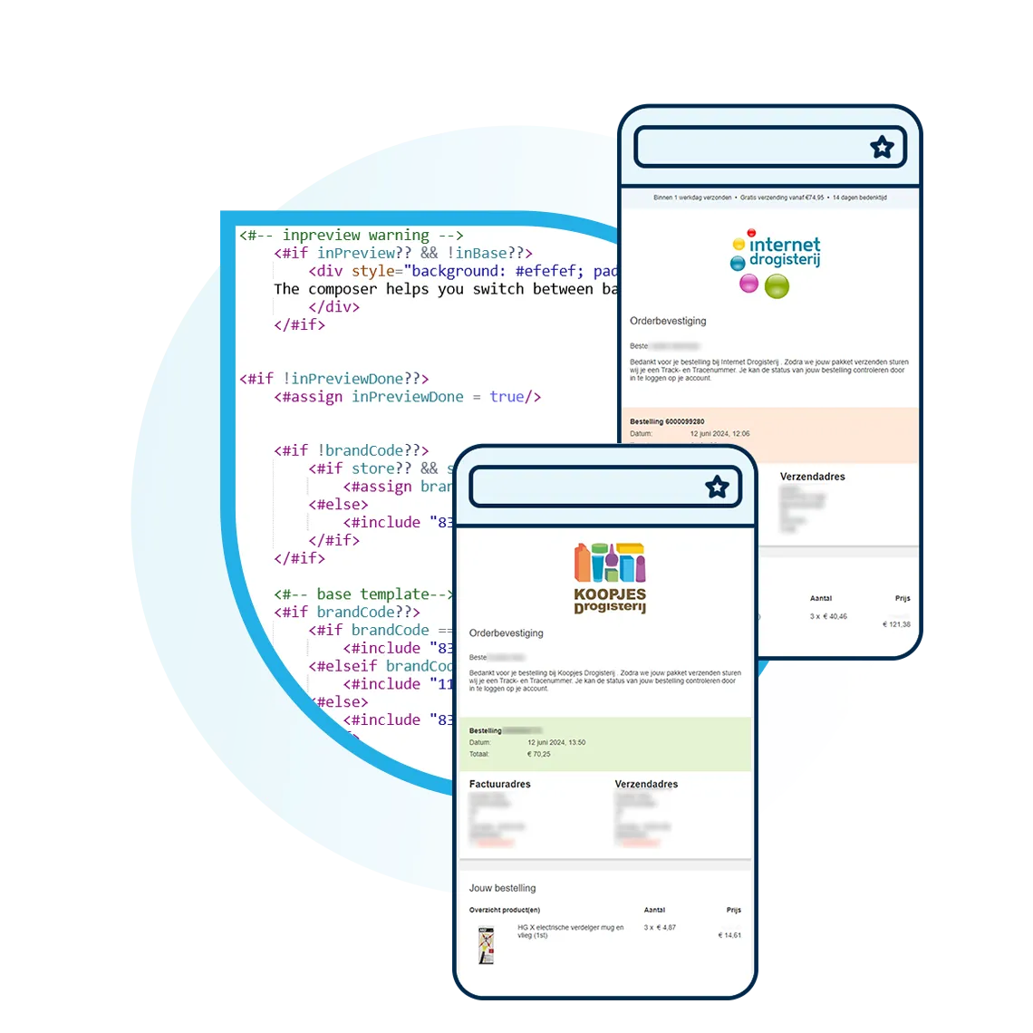 Whether you send order confirmations from your webshop, an invoice from your ERP, or a password-forgotten email from your CRM, with Spotler SendPro you can centralise, optimise and analyse all transactional emails that leave your company. With our powerful template engine, you can use the same email template for all your different brands. This way you create one consistent brand experience.