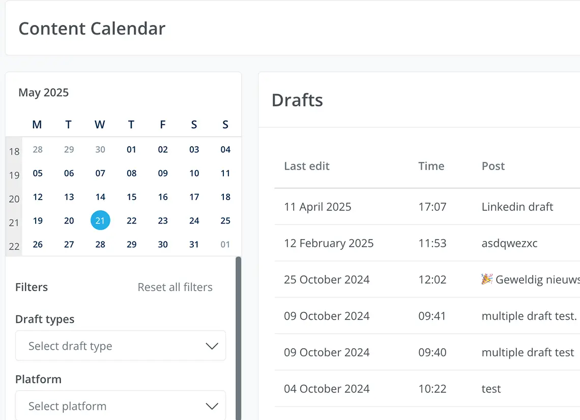 Keep all valuable ideas in one platform. Save your posts so you can review or get them approved.