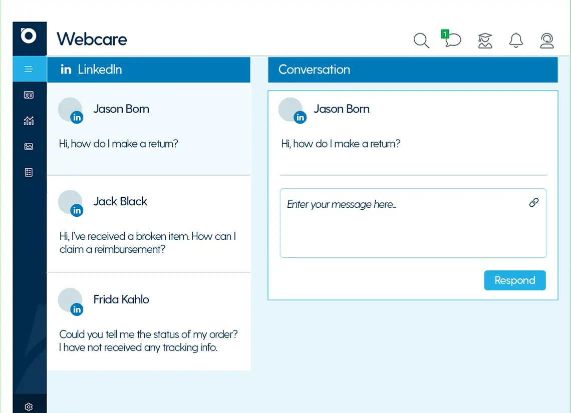 Deliver responsive, joined-up webcare on the channels your audience actually uses — like your website’s live chat, WhatsApp, and social media. By bringing these channels into one inbox, you make it easy to respond quickly, support efficiently, and free your team up for what matters most.
