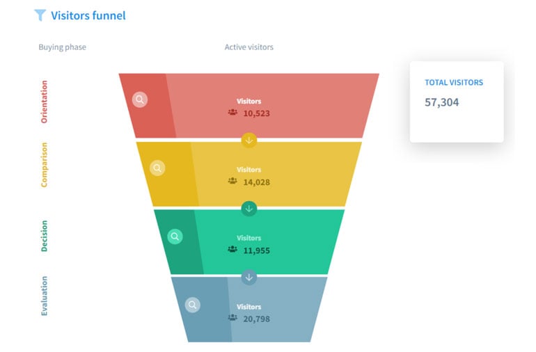 The most important feature that Spotler Activate’s customer data platform offers is the ability to create customer journeys. A customer journey is divided into different phases that your customer goes through in the purchase process of a product or service. Based on the segments we explained earlier, each customer is assigned to one of the following phases. And depending on this phase, you can show them different content in line with the specific phase.