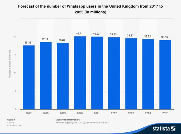 To put that into context, around 38 million people in the UK use WhatsApp regularly; 2 out of every 3 people. So, if your total audience is 250,000 contacts, then you could potentially reach 165,000 of them on WhatsApp.