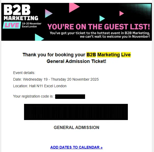 Example of a booking confirmation through email: