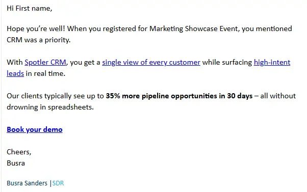 Example of a lead follow-up through email: