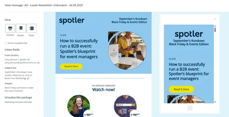 Spotler’s Mail+ platform shows you how your messages will look on both mobile and desktop, and allows you to edit the mobile version directly.