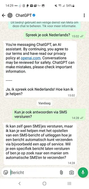 2025: een afspraakherinnering via SMS en chatten met AI via WhatsApp