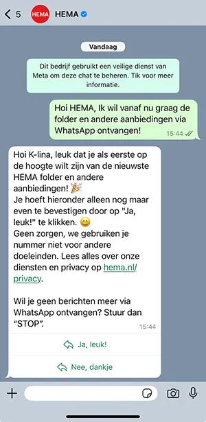 HEMA’s keuze om WhatsApp te gebruiken voor hun folders is een mooi voorbeeld van hoe bedrijven zich aanpassen aan de digitale tijd. Dit is niet alleen handig, maar ook veel meer in lijn met hoe we tegenwoordig communiceren: snel, visueel en persoonlijk.