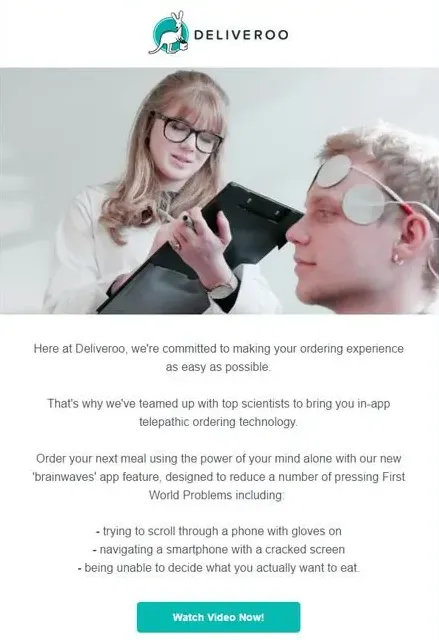 This approach is a strong one if humour doesn’t really fit your brand, or if you can’t come up with something genuinely funny. Or if you get the dreaded “What are we doing for April Fools?” message at 5:20pm on March 31st from your boss.
