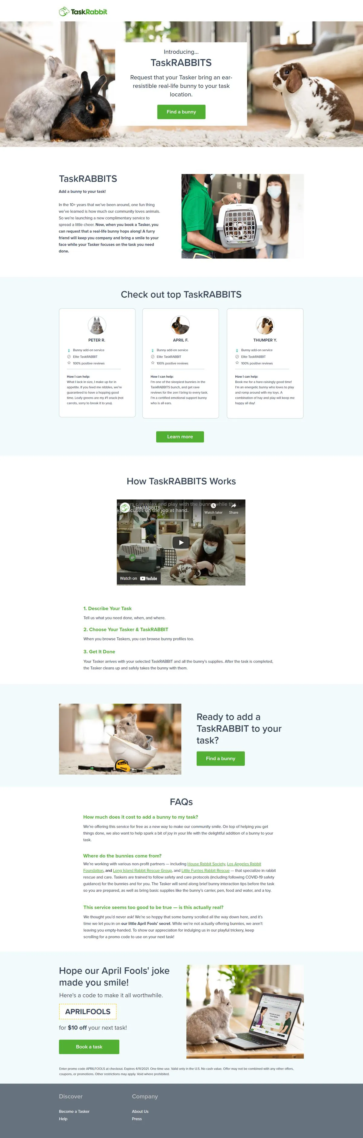 Service platform TaskRabbit took this idea and ran with it, saying they would bring actual bunnies with them on jobs. Adorable!