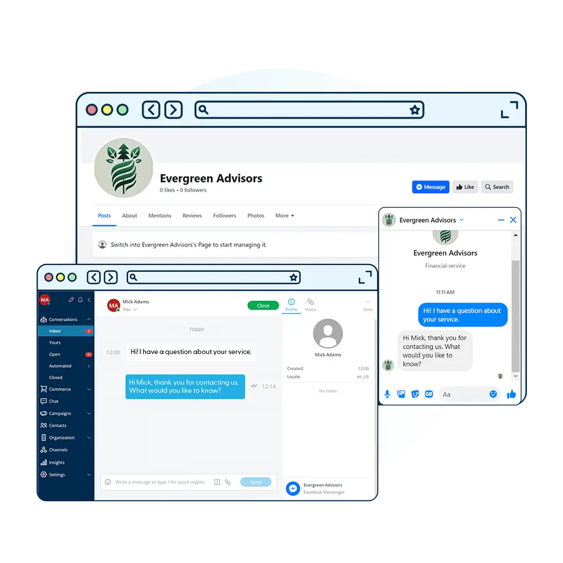 Have a social inbox where you collect direct messages coming from Facebook, Instagram or WhatsApp. Use the same inbox to send replies without changing platforms.