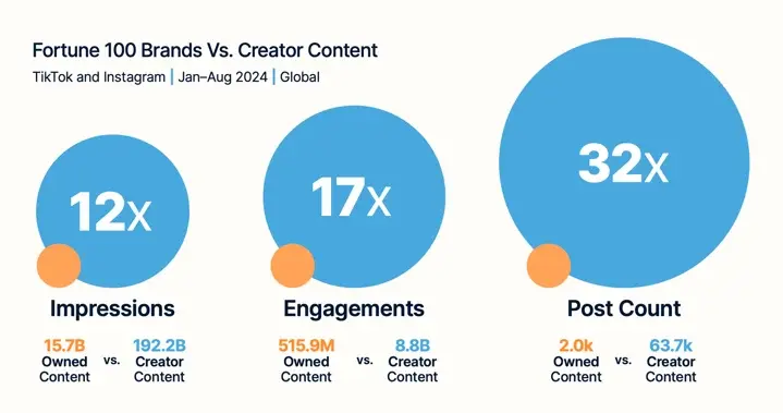 CreatorIQ looked at the Instagram and TikTok presence of the 100 biggest brands in America, comparing the impact of their own content to that of content posted about them by creators.